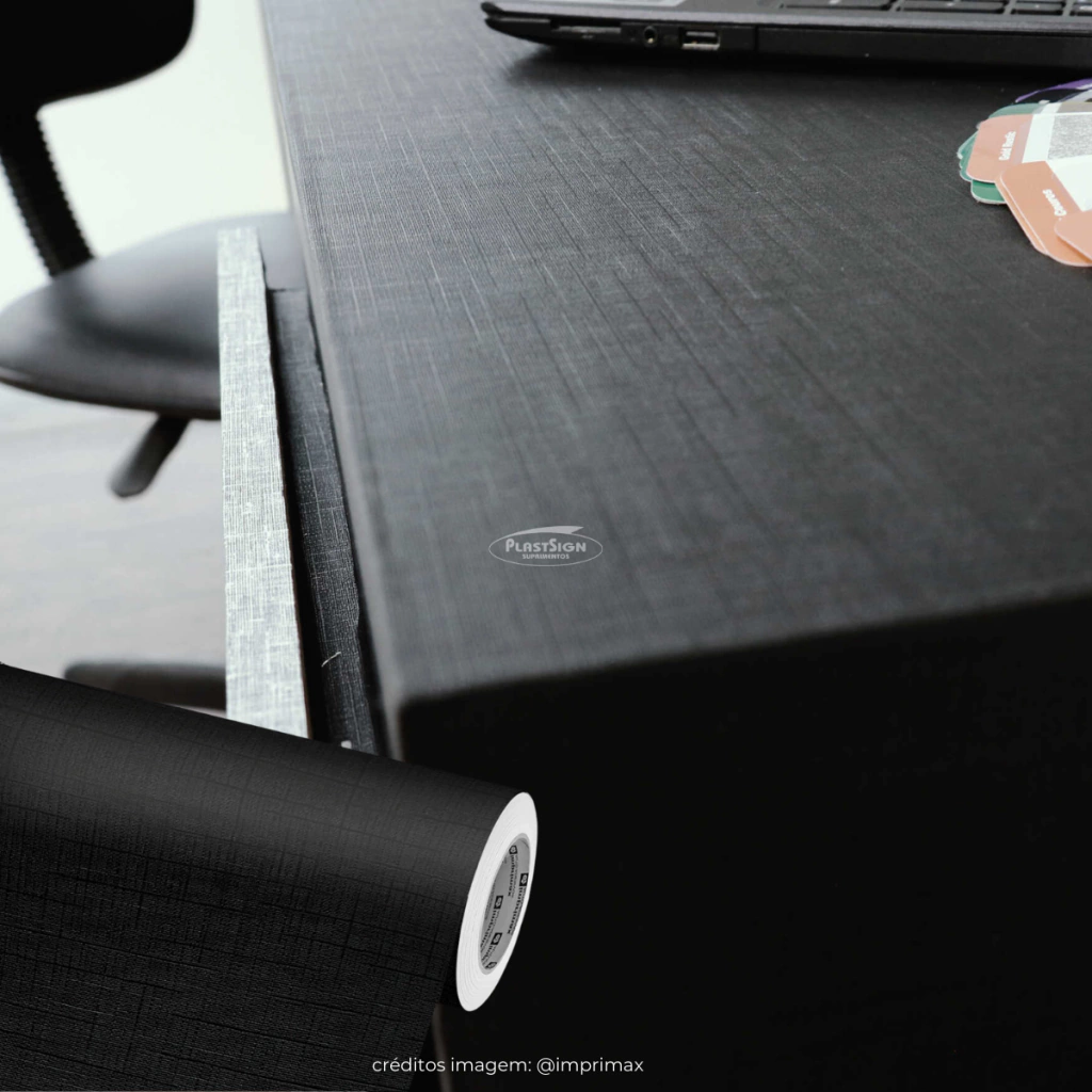 ✔️ Textura realista de linho telado em preto absoluto, sofisticado e moderno