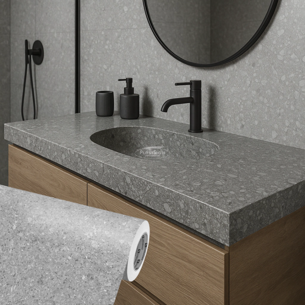 Renove seus ambientes com praticidade e estilo usando o Adesivo Terrazzo Cinza – 1,22m, um vinil adesivo decorativo premium que transforma paredes, móveis, pisos e bancadas sem sujeira e sem quebra-quebra.